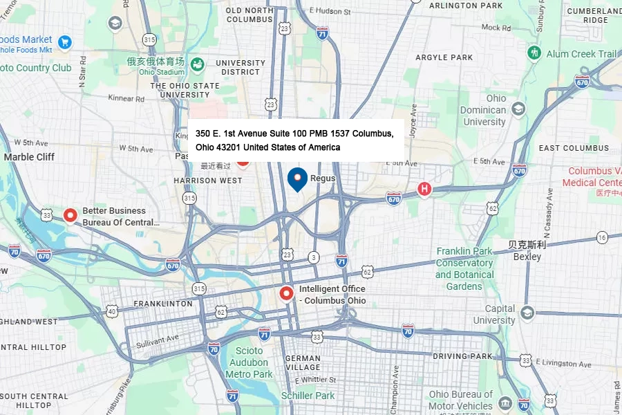 公司地址:350 E. 1st Avenue Suite 100 PMB 1537 Columbus, Ohio 43201 United States of America